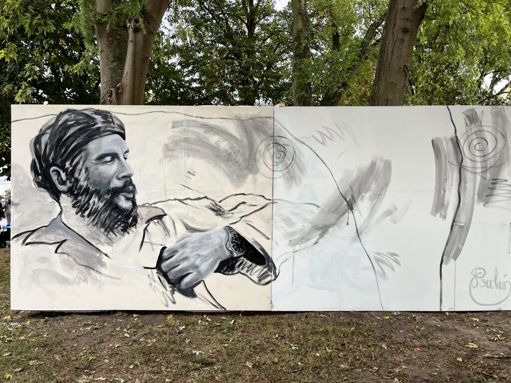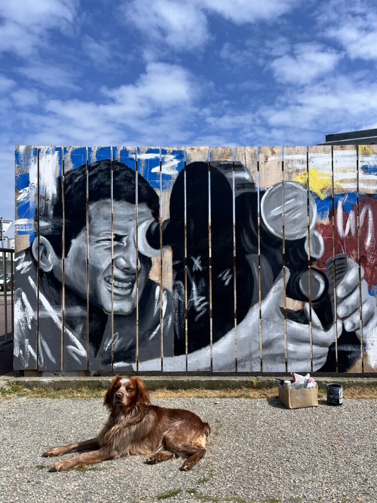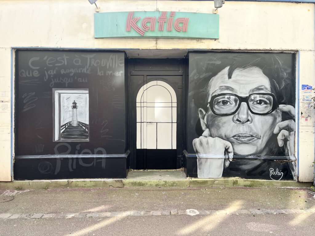 Peinture en live Saint Germain en Laye, spray aérosol et acrylique sur panneau 2mx2mPermis de démolir, spray aérosol sur mur, 5X4m Juin 2023La reine des plages, Spray aérosol et peinture acrylique, 2023, Trouville-sur-Mer